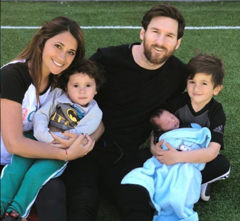তিন সন্তান ও স্ত্রীর সাথে মেসি। ১ এপ্রিল ২০১৮ তারিখে তোলা ছবিটি মেসির ইন্সটাগ্রাম থেকে নেয়া
