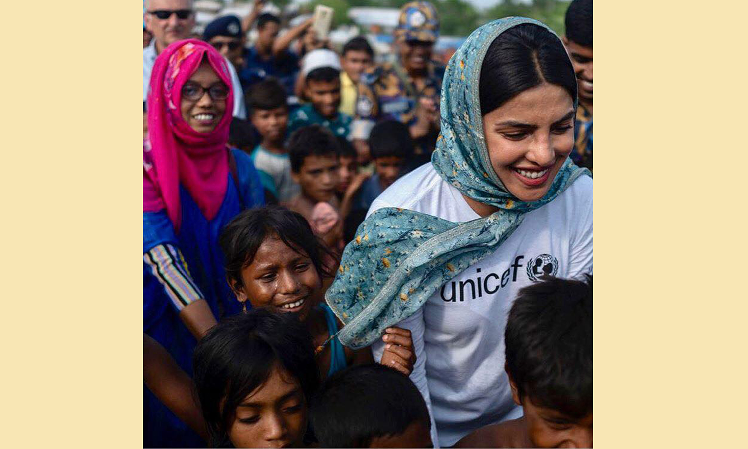 বলিউডের জনপ্রিয় অভিনেত্রী প্রিয়াঙ্কা চোপড়া বাংলাদেশে এসেছেন। জাতিসংঘের শিশু তহবিল (ইউনিসেফ) -এর শুভেচ্ছাদূত হিসেবে রোহিঙ্গা শরণার্থী শিবির পরিদর্শনে এসেছেন তিনি। আজ সোমবার সকাল আটটার দিকে ঢাকার হযরত শাহজালাল আন্তর্জাতিক বিমানবন্দরে নামেন তিনি। এখান থেকে তিনি ইউএস-বাংলার একটি উড়োজাহাজে কক্সবাজার পৌঁছান। জানা গেছে, কক্সবাজারে প্রিয়াঙ্কা উখিয়াস্থ রয়েল টিউলিপ হোটেলে অবস্থান করছেন। তিনি বাংলাদেশে চারদিন থাকবেন। দুপুরে তিনি এক টুইট বার্তায় রোহিঙ্গা ক্যাম্প পরিদর্শনের কথা নিশ্চিত করেন।