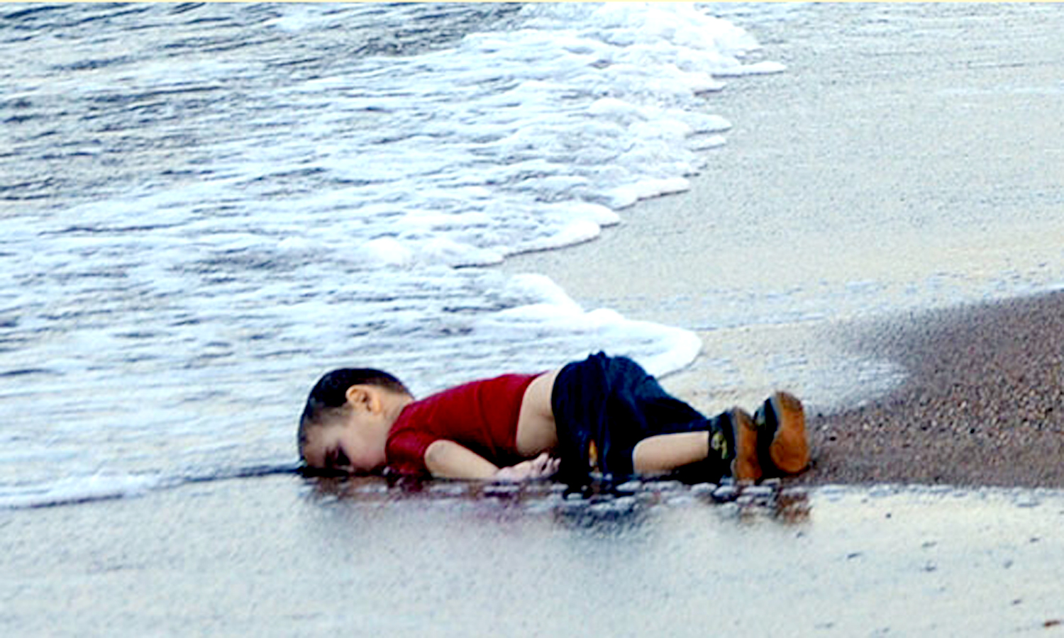 ভূমধ্যসাগরের উপকূলে পড়ে থাকা আয়লান কুর্দির লাশ