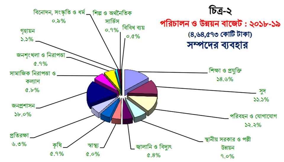 নির্বাচন সামনে রেখে অবকাঠামো খাতকে গুরুত্ব দিয়ে উন্নয়ন বাজেটে বরাদ্দ প্রস্তাব করা হয়েছে মোট বাজেটের ৩৮.৬৭ শতাংশ। যদিও অন্যান্য অর্থবছর তা ৩৫ শতাংশের নিচে ছিল। অন্যদিকে ২ লাখ ৮৮ হাজার ৯০৪ কোটি টাকার অনুন্নয়ন ব্যয়ের মধ্যে সর্বোচ্চ ২০ শতাংশ বরাদ্দ রাখা হয়েছে সরকারি কর্মকর্তা-কর্মচারীদের বেতন-ভাতা বাবদ। দ্বিতীয় সর্বোচ্চ ১৫ দশমিক ৮ শতাংশ অর্থ ব্যয় হবে সুদ পরিশোধে। সরকারি কর্মকর্তা-কর্মচারীদের পেনশন খাতেও অনুন্নয়ন ব্যয়ের ৯ দশমিক ১ শতাংশ ব্যয়ের পরিকল্পনা হয়েছে।