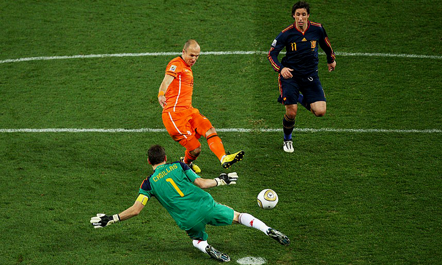 ‘এসব ফুটবলেরই অংশ এবং আজ থেকে এটি আমার জীবনেরও অংশ’- ২০১০ বিশ্বকাপের ফাইনালে করা একটি মিস প্রসঙ্গে ডাচ উইঙ্গার আরিয়েন রবেন। ক্যারিয়ারে অসংখ্য হাফ চান্সকে গোলে রূপান্তর করা রবেন জীবনের সবচেয়ে গুরুত্বপূর্ণ ম্যাচে করে বসেন অমার্জনীয় ভুল! ওয়েসলি স্নাইডারের দেয়া পারফেক্ট পাসকে গোলে রূপ দিতে কেবল ক্যাসিয়াসকে পরাস্ত করলেই হতো। কিন্তু, নিদারুণ ব্যর্থ রবেন। ক্যাসিয়াসের ডানপাশ দিয়ে মারা শট স্পেন অধিনায়কের পায়ের সঙ্গে ধাক্কা লেগে বার ঘেঁষে যায়, সেই সাথে প্রথম বিশ্বকাপ জয়ের স্বপ্নটাও।