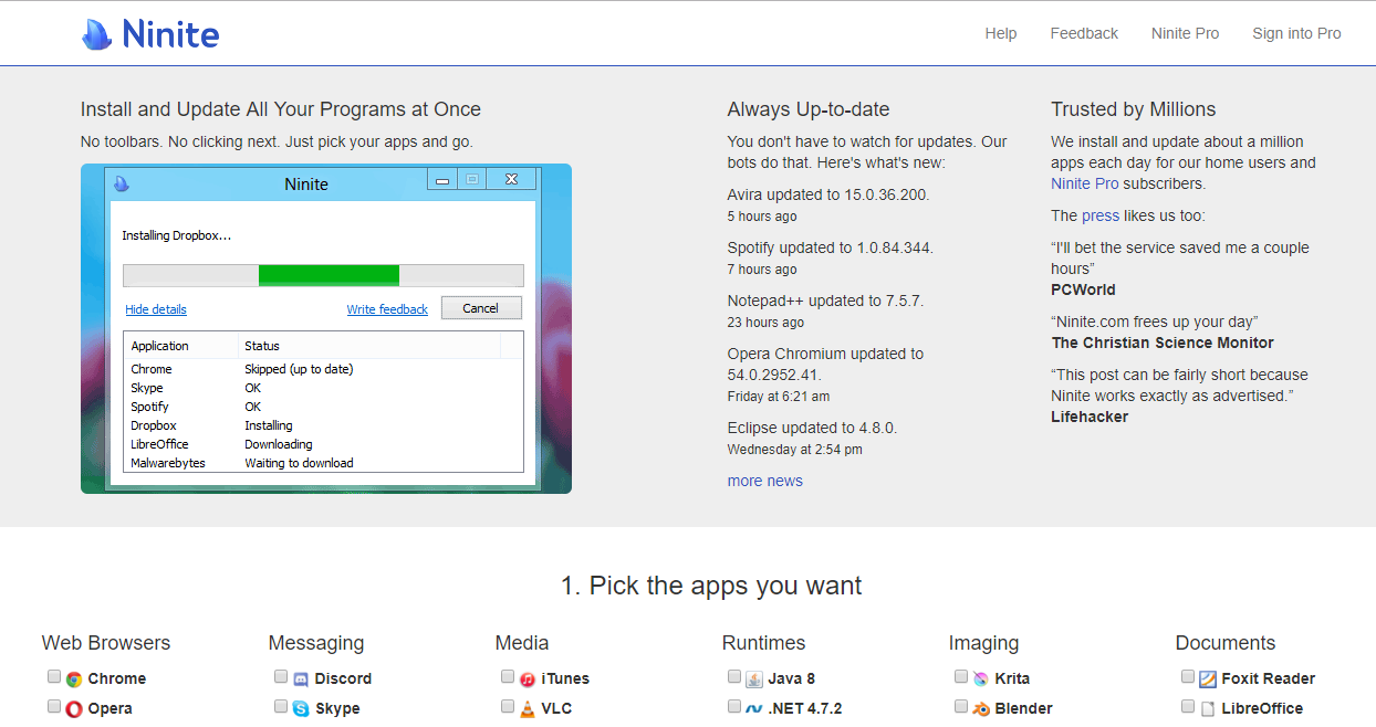 আমরা জানি, কম্পিউটারে নতুন অপারেটিং সিস্টেম সেটআপ দিলে সব সফটওয়্যার চলে যায়। আর এই সব সফটওয়্যার অনেক কষ্ট করে খুঁজে খুঁজে বের করে ইন্সটল করতে হয়। এতে অনেক সময়ের দরকার হয়। এই সমস্যা সমাধান করতে সাইটটি খুবই কার্যকর। এখানে আপনি আপনার প্রয়োজনীয় সব সফটওয়্যার পাবেন। সফটওয়্যারগুলো সিলেক্ট করে, গেট ইউর নিনিট ক্লিক করলে অটোমেটিক ইনস্টল হয়ে যাবে। নিনিতে নির্মাণ করেছেন সানফ্রান্সিসকোর দুই বন্ধু, পাত্রিক সুইসকসিকি ও সাসছা কুযিন্স।এতে বিনিয়োগ করে বিখ্যাত অর্থলগ্নিকারী প্রতিষ্ঠান ওয়াই কম্বিনেটর।
